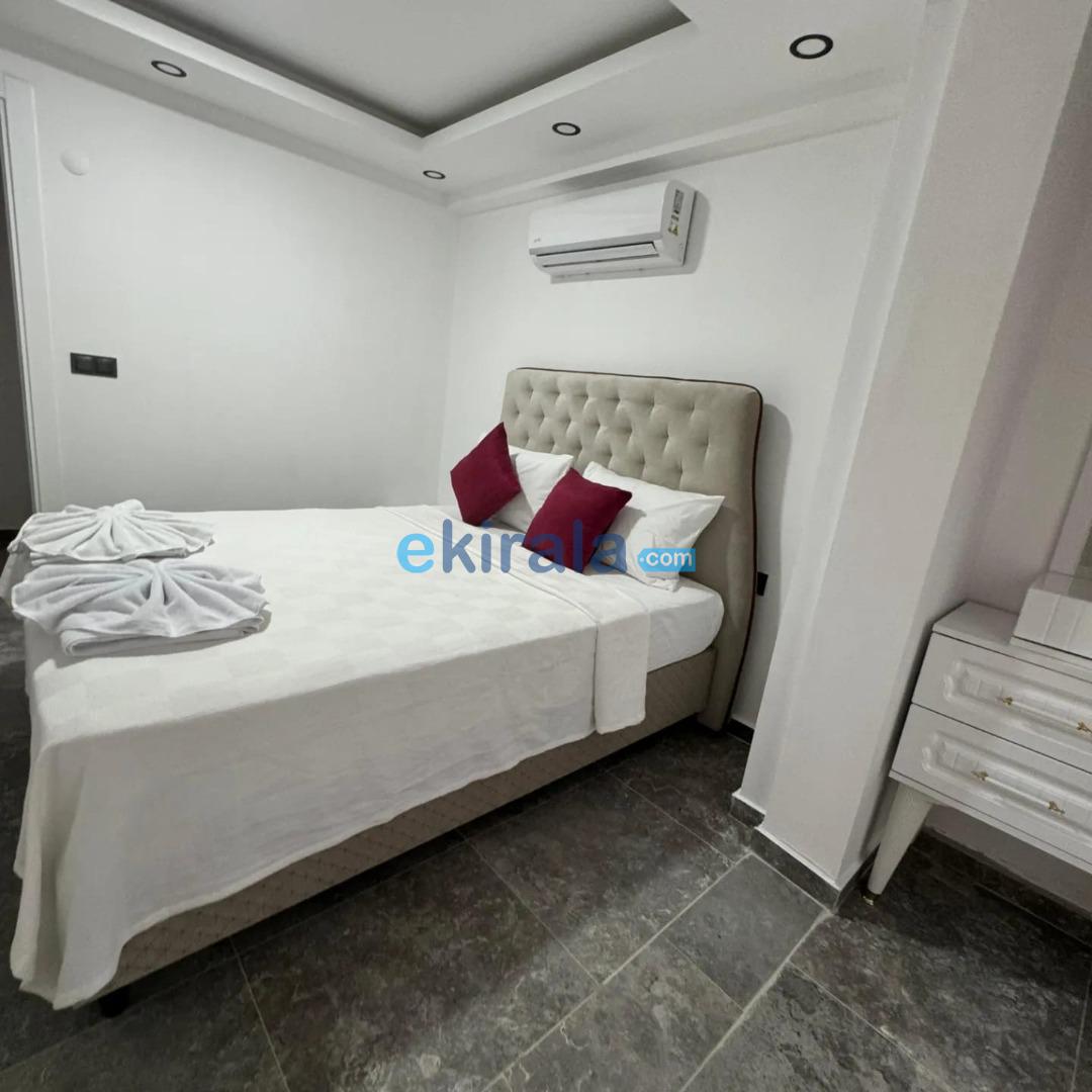 1. Yatak Odası: Çift kişilik yatak, elbise dolabı, komodin, makyaj masası, klima, banyo/WC