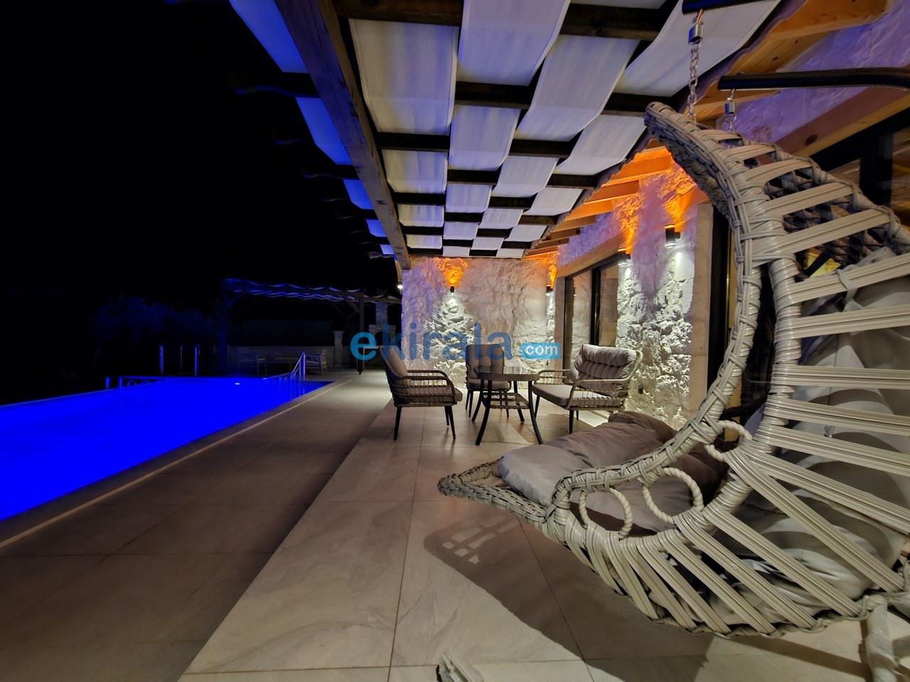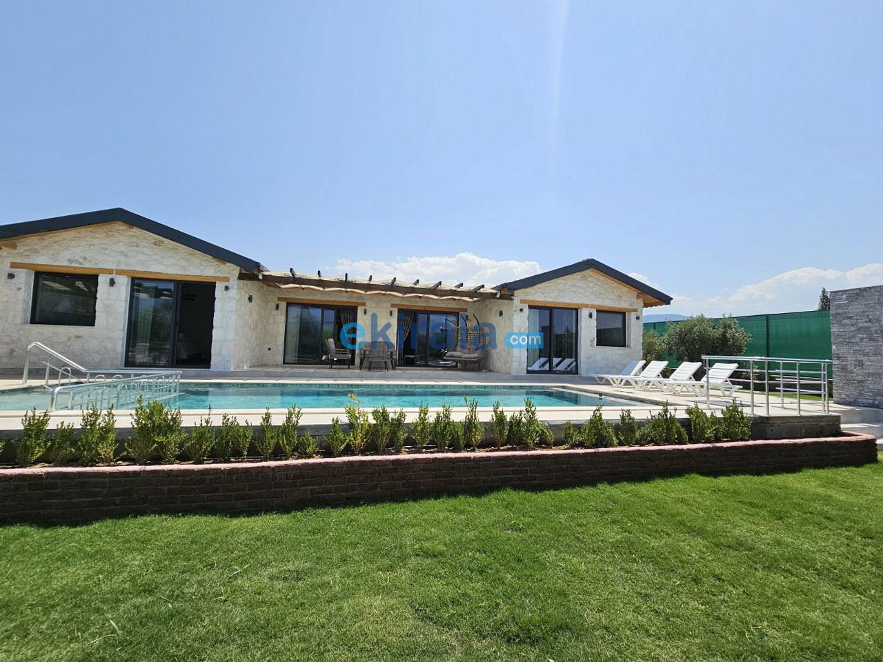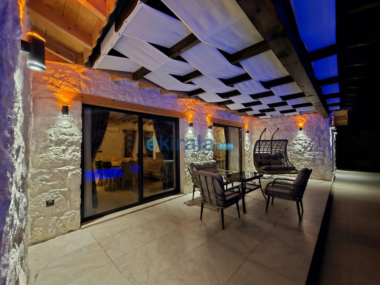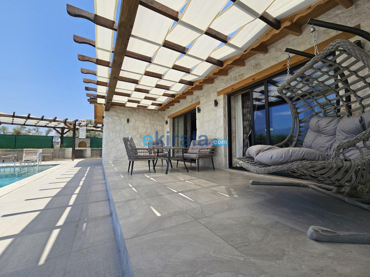 Villa Dış Mekân: Bahçede 4 şezlong, şemsiye, barbekü mangal, salıncak, masa, sandalye bulunmaktadır.